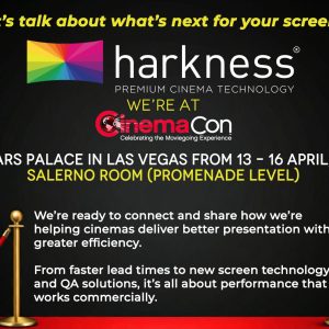 With global reach, Harkness is regarded as the world leader in cinema and has screens in more cinemas worldwide than any other manufacturer. With its industry leading 2D and 3D screen brands (Perlux HiWhite, Clarus XC and Spectral) along with an innovative range of presentation monitoring tools, digital surveying services and suite of cinema design and specification apps, Harkness continues to lead the way in screen technology for cinema.